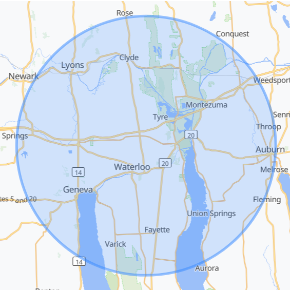 While located in Waterloo, New York, we proudly serve the entire surrounding Finger Lakes area and beyond. Click below or call (315) 236-2324 to request a fast and free consultation.